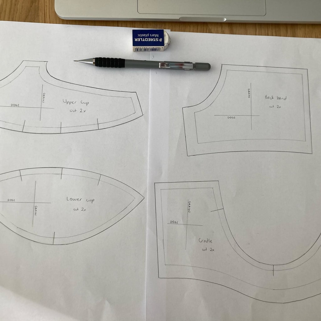 And early on in my bra-making journey I did a practice-run draft of an underwire bra! I used the Bare Essentials Bras book by @porcelynnesupplies). It’s a math-based approach and she even provides a semi-automated calculator on her website if you don’t want to calculate everything manually. I never made a toile of this draft though because I learned shortly afterwards that I needed bigger wires. I’ll come back to redraft it in the coming weeks though ✨