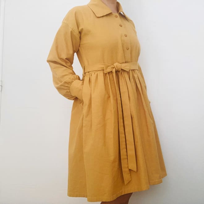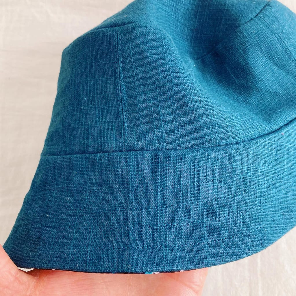 I made this hat using the linen remnant from my overalls, some of my bright wax fabric for the lining, and a small bit of soft interfacing. It was an easy make, although next time I’ll think about how I could enclose the lining and outer seams together so the lining doesn’t move. Also, other than cutting the pieces with more seams (like I did for the band that goes around the head), I’m not sure how I could reduce the scraps that cutting round shapes leaves… 🤔