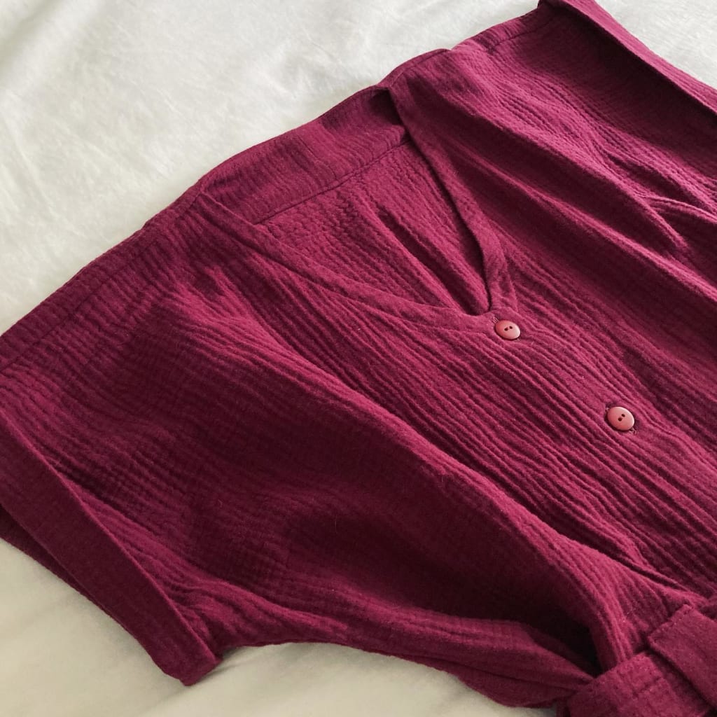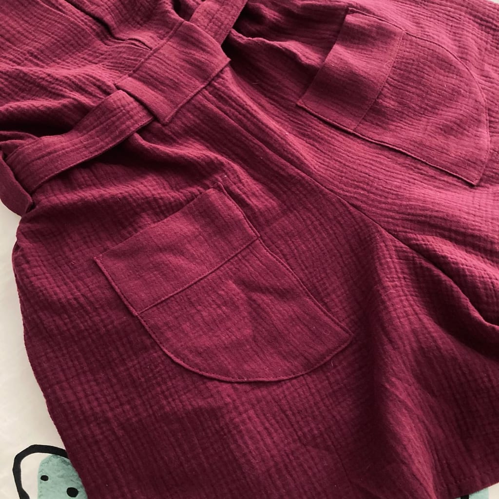 I never even wanted a jumpsuit or playsuit before I saw this pattern! I like the clean bias binding neckline finishing, the way it blouses with the back yoke and pleat, and the huge inseam pockets. Itβs super comfy and Iβd like to try making it again in a different colour β with the correct measurements and the drawcord π
