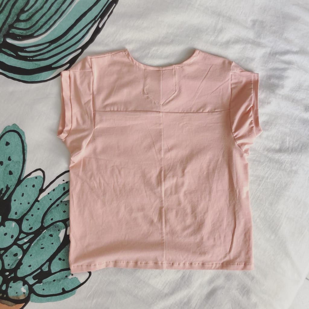I included a photo of the pattern next to a normal t-shirt pattern that I’ve made before (the one from Dressed book by Doe and Deer). The bodice on this one is made from 7-8 pieces, and each sleeve from 4 pieces. The sleeves are quite an unusual shape but I like them! I should have taken a side view to show the oval sleeve seams on the body…