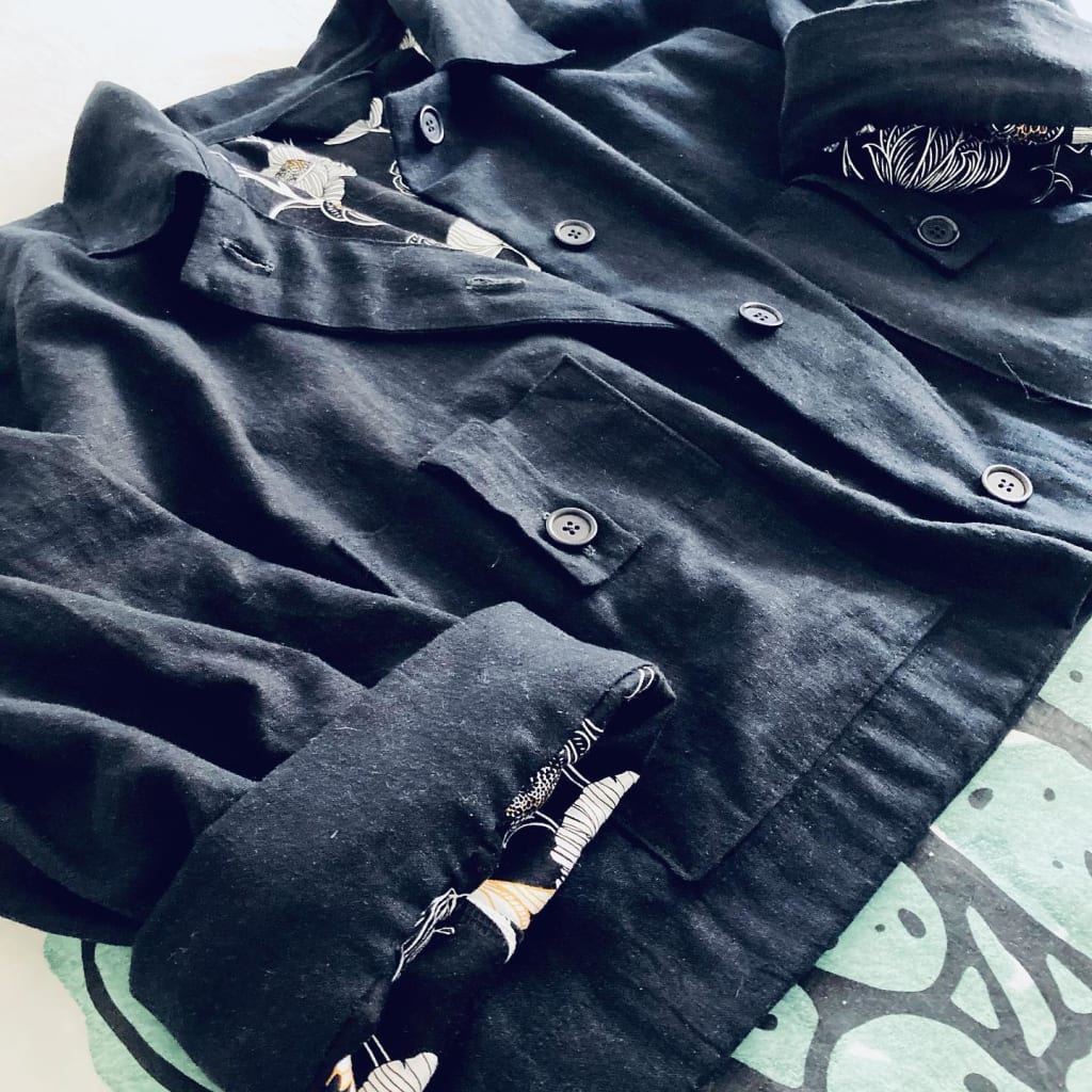 I didn’t really know what I was doing but did have an idea of the construction order I’d need to follow. I sewed the shell and lining separately, basted them at the neck and sleeves, then sewed on pockets and closed it all up with the cuffs, collar, button placket and hem. I unstitched and reinforced the collar with percale interfacing after everyone voted yes in my stories, and even did a little bit of hand sewing on the cuffs and splits (thanks to @vrouwlijn_wonderlijk).