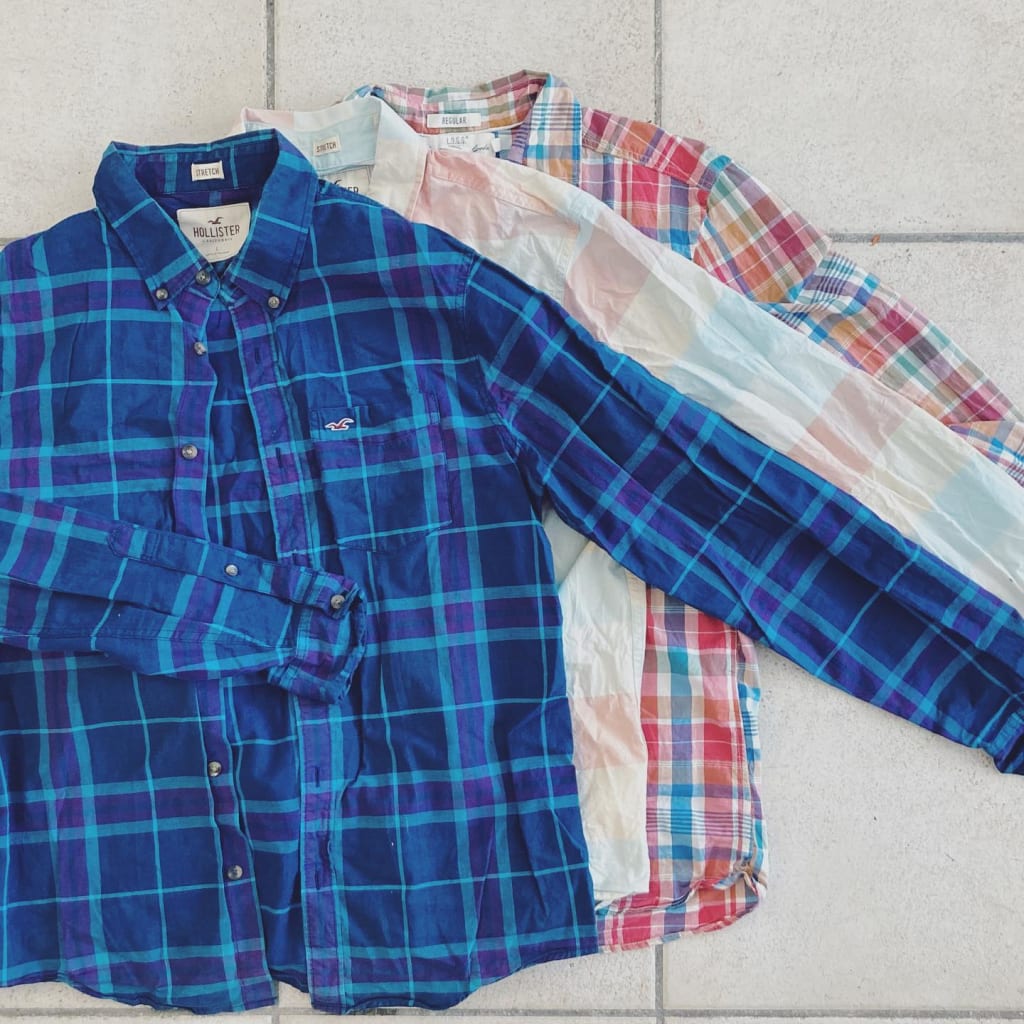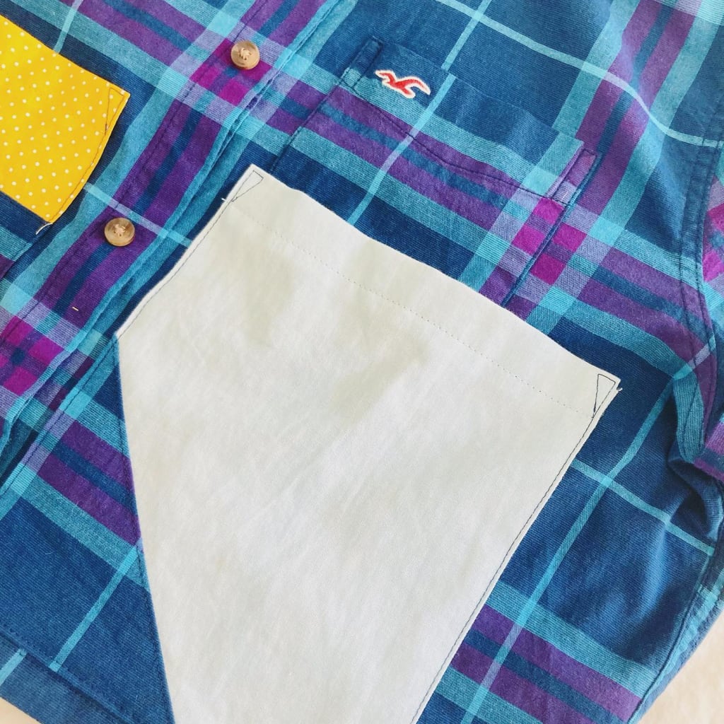 My first upcycling/refashioning project: a large men’s shirt converted to a cute cropped one. 🥰